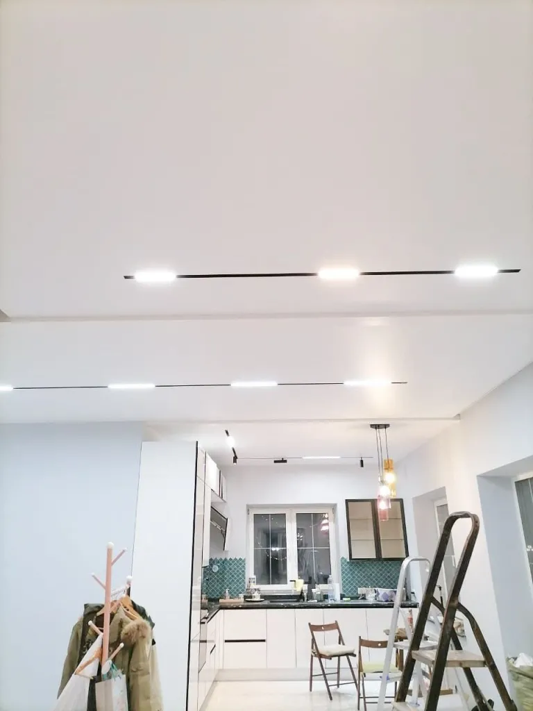 Шов на натяжном потолке – ровная полосочка, шириной всего 1 мм. Виден он, безусловно, будет, однако сравнивать такой шов со швом между плитами перекрытия, конечно, не приходится.