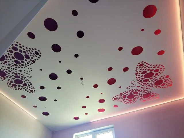 Эффект настоящего «звездного неба» достигается за счет светодиодов, расположенных за основным натяжным полотном. Различные формы, созвездия, мерцание «звезд», переливы цвета – создадут неповторимую атмосферу общения с живой природой у Вас дома.