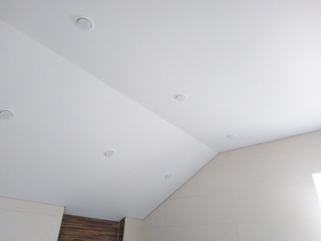 В ванную — оптимальны водостойкие ПВХ-полотна с матовой или сатиновой фактурой. Они устойчивы к влаге, не боятся конденсата и препятствуют образованию плесени.